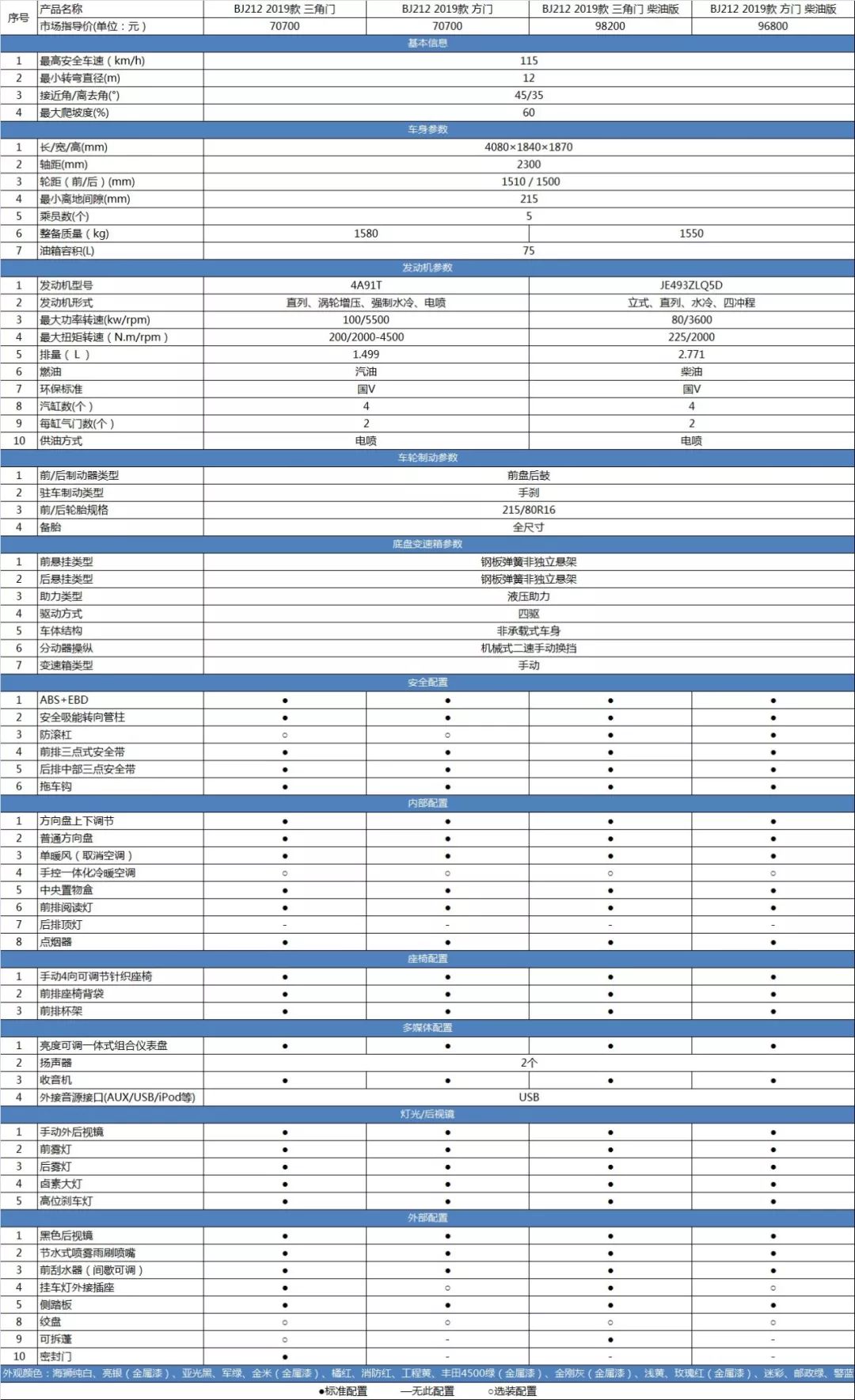 BJ212 方门 柴油版 - 96800元